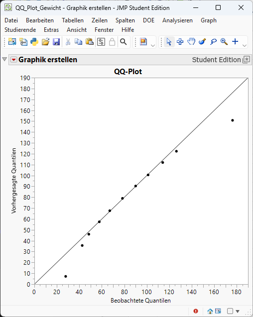 Wenn Merkmalswerte der theoretischen Verteilung folgen, stimmen empirische und theoretischen Quantile annähernd überein, die Punkte liegen auf der Winkelhalbierenden