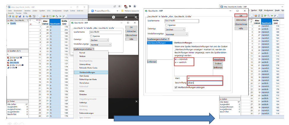 Numerischen Codes oder Kürzeln können lesbare Labels zugewiesen werden (z. B. “m” = “männlich”).